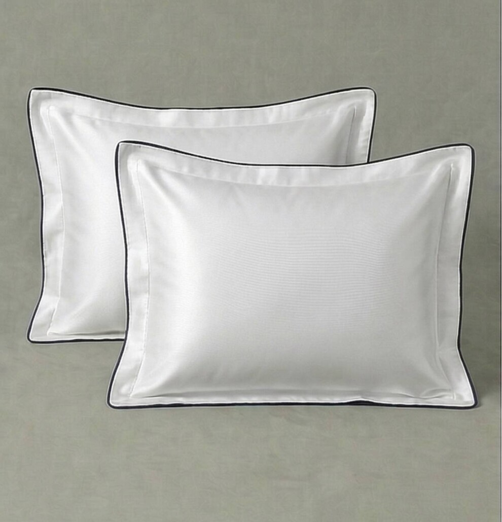 Наволочка из премиального сатина с кантом Амели / белый с темно-синим кантом на молнии 50*70 cм