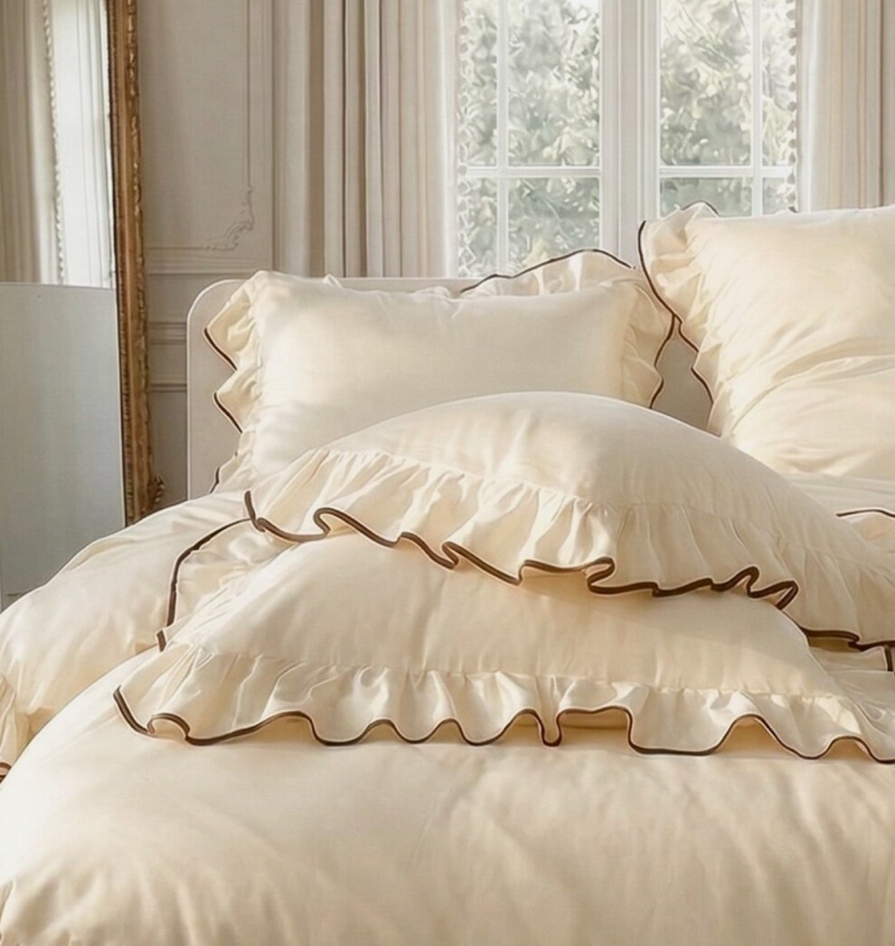 Наволочка из премиального сатина с рюшами / Шампань и Шоколад 50*70 cм